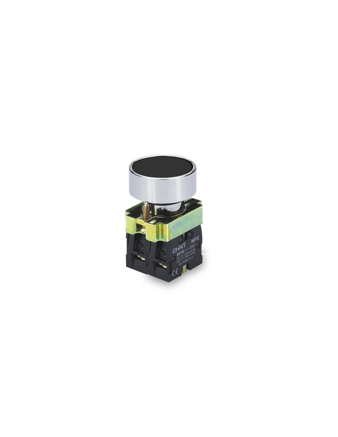Chint Np2- Ba21 Pulsador Rasante Negro Metalico Con Bloque 2 X Na