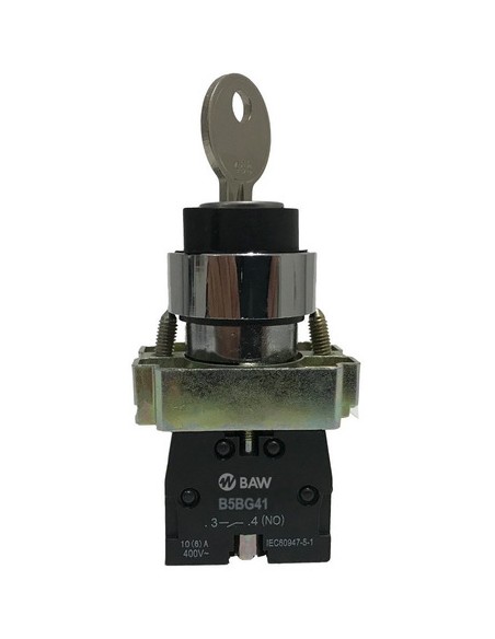 - BAW B5BG41 CERRADURA Y LLAVE SELECTORA 2 POSICIONES 1-0 CON BLOQUE 2 NA - CON RETENCION