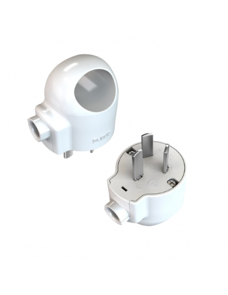 JELUZ FM620 FICHA MACHO 3 PATAS CON TIERRA 10A SALIDA LATERAL MANIJA BLANCA