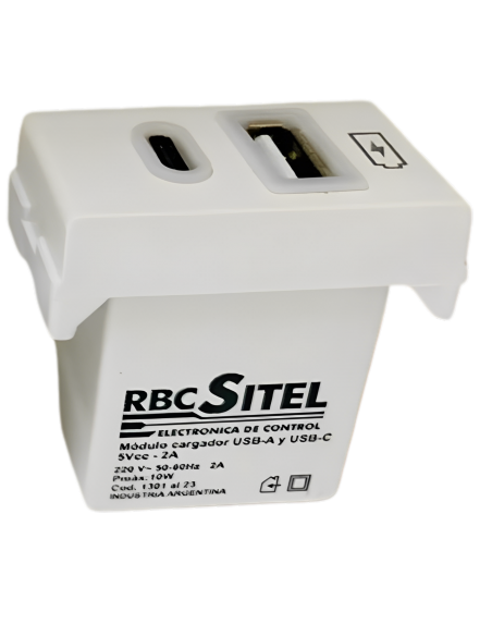 & RBC 1309BL MOD CARGADOR USB A + C 2A BLANCO 2 PUERTOS COMBINADOS JELUZ
