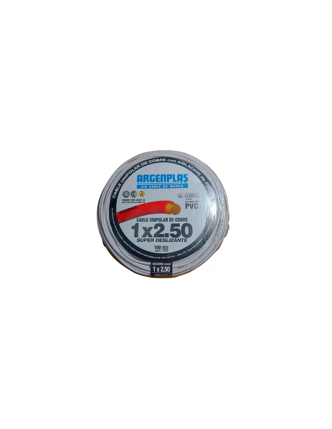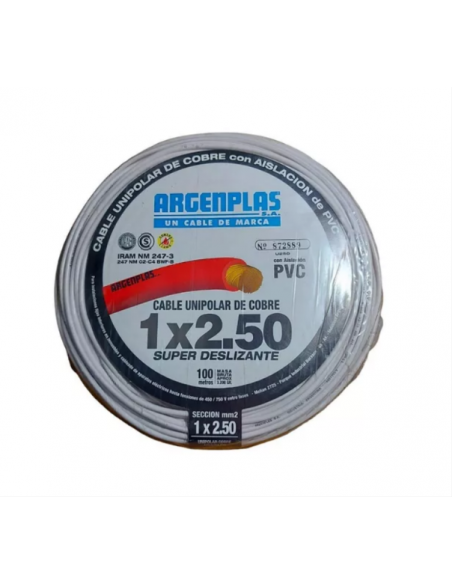 Argenplas U250bl Mts. Cable 1 X 2.50 Rollo Unip Blanco X100 Iram Nm247-3